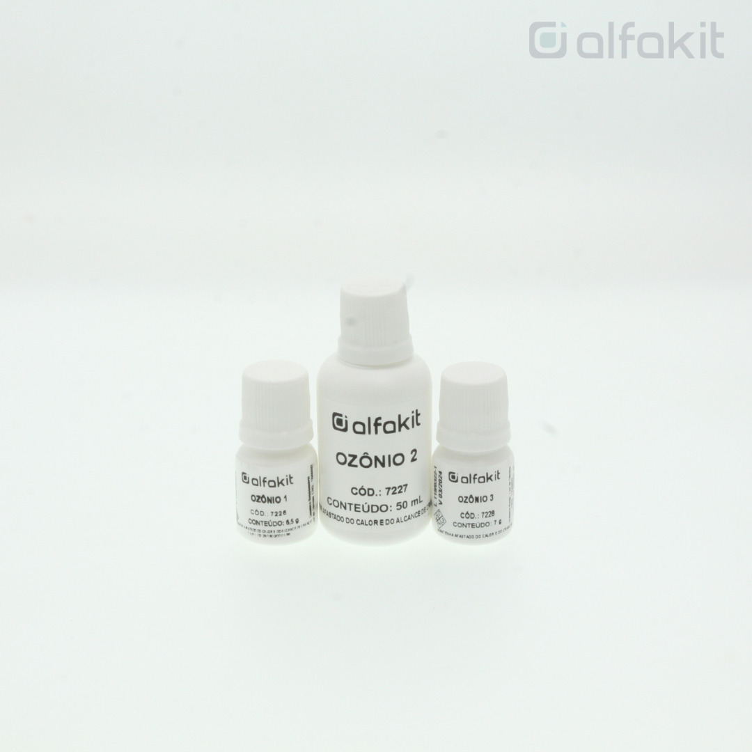 Kit para determinação de Ozônio em água utilizando fotocolorímetro ou espectrofotômetro com quantidade para realizar 100 testes.